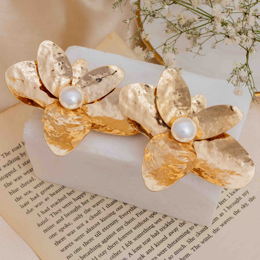 Flower Shaped Pearl Brass Earring